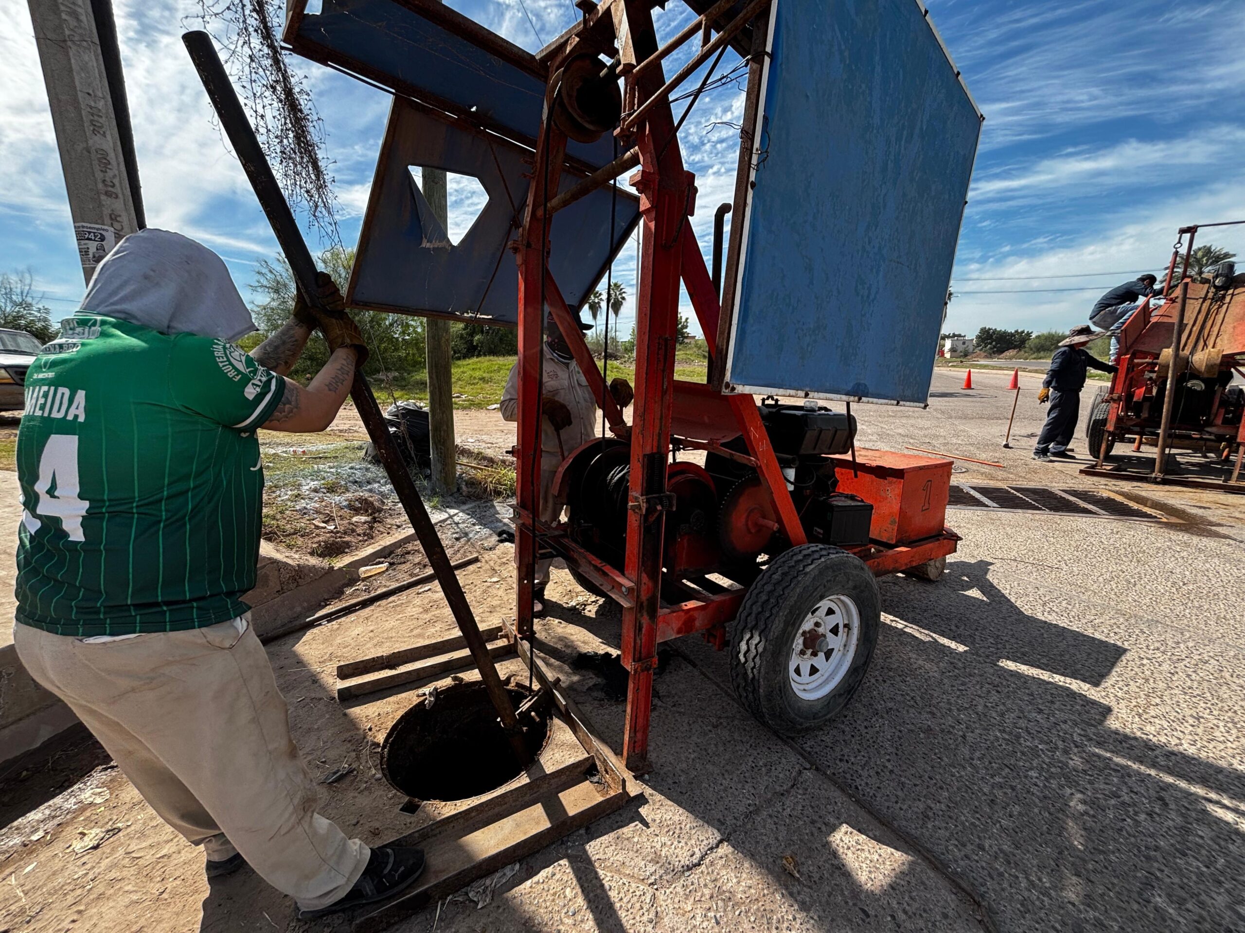 Por indicaciones del Presidente Municipal de Ahome, Antonio Menéndez de Llano, JAPAMA lleva a cabo trabajos profundos de mantenimiento en distintas líneas de alcantarillado del municipio, mediante el uso de malacates.