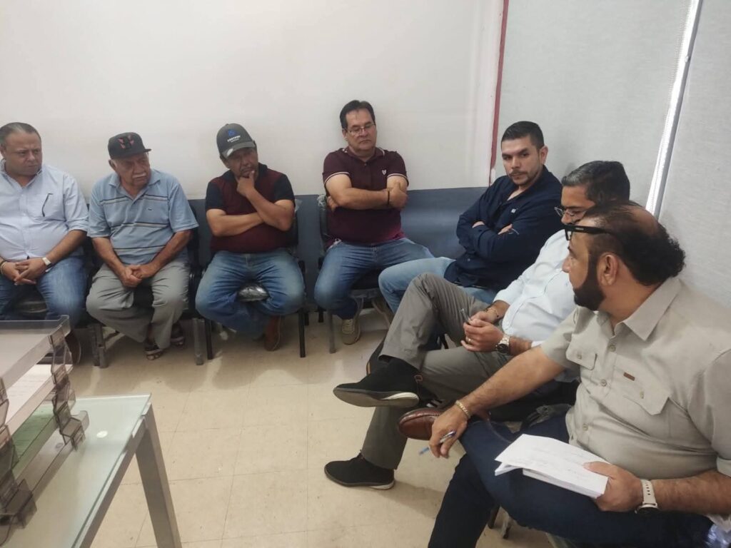 ESCUINAPA.- El director de Vialidad y Transportes, Marco Antonio Osuna Moreno y Cinthia Daniela Hernández Alvarado, Delegada de Vialidad y Transportes de Escuinapa, sostuvieron una reunión de trabajo con Roberto Zamudio Ruiz, dirigente de la Confederación Nacional de Organizaciones Populares (CNOP); José Saucedo Toledo, dirigente de la Confederación de Trabajadores de México (CTM); David Donjuan Michel, dirigente de CATEM, y Alan Ybarra Galindo, titular de la empresa Arrencosa, S.A. de C.V.