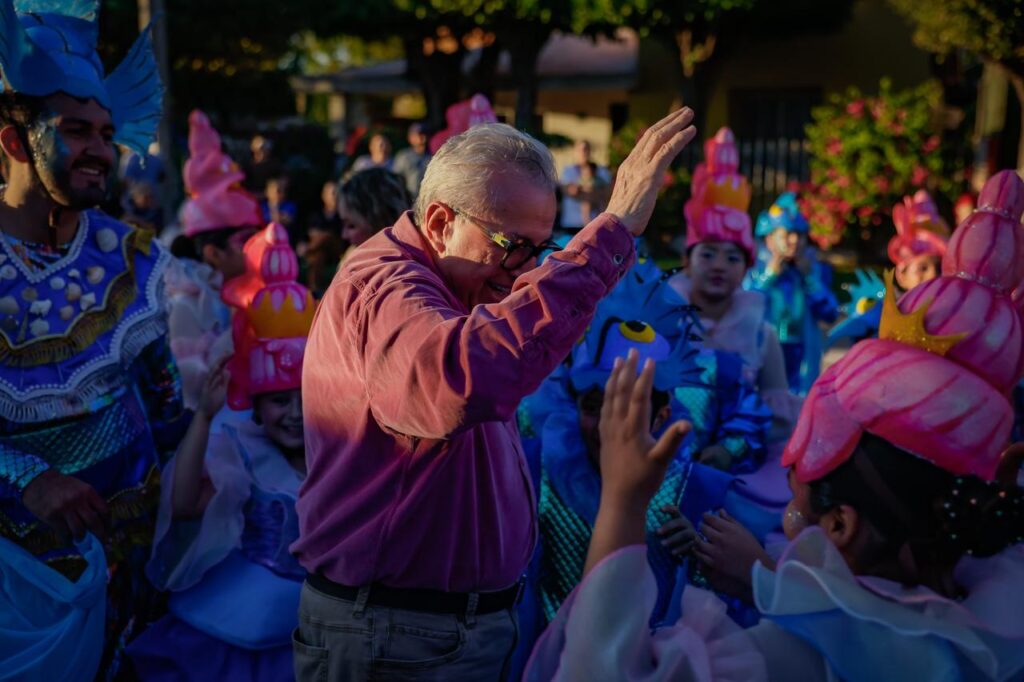 *El Gobernador Rocha saludó a los mocoritenses y convivió al ritmo de las comparsas.