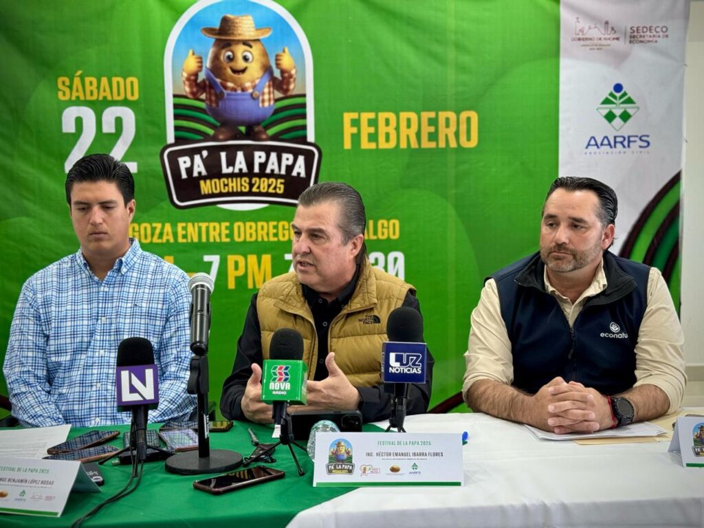 Jorge López, Presidente de los Productores de Papa, acompañado de José Blanchet y José Urquijo, entre otros integrantes de dicho organismo productivo, explicó que el Festival Pa’la Papa Los Mochis 2025 será el sábado 22 de febrero de las 9 de la mañana a las 7 de la tarde en la Zona 30 del centro de la ciudad, por la calle Zaragoza.