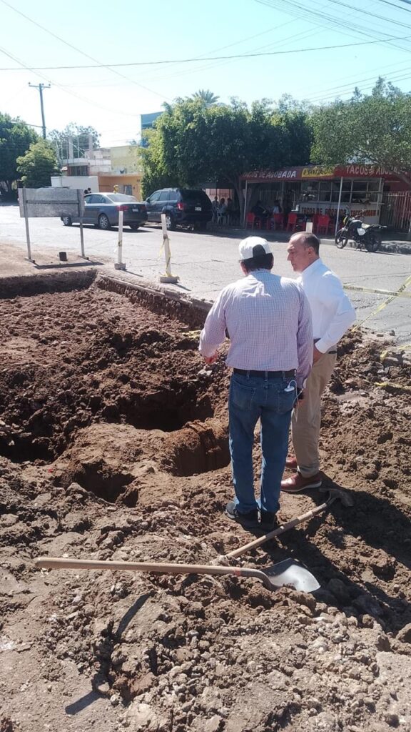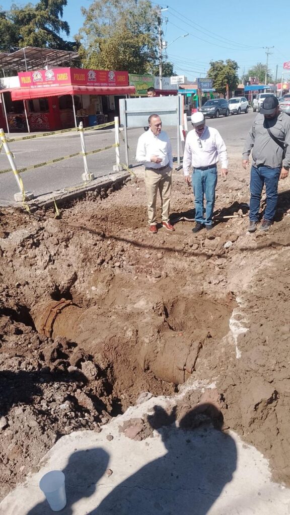 En entrevista, el Alcalde informó que acudió al cruce de bulevar 10 de Mayo y calle Guerrero, en el sector norte de la ciudad, donde efectivamente encontró una losa levantada debido a una obra grande que se realiza en ese sector, así como al tránsito de unidades pesadas.