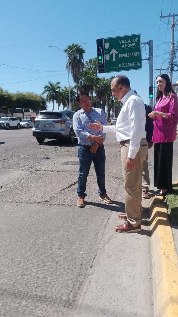 Los Mochis, Ahome, Sinaloa, a 13 de marzo del 2026.- En atención a señalamientos ciudadanos sobre puntos con losas de concreto hundidas o levantadas en el pavimento en algunos puntos de la ciudad que afectan el tránsito y representan riesgos para vehículos pequeños, así como fugas de agua, el Presidente Municipal Antonio Menéndez De Llano Bermúdez realizó un recorrido para revisar los sitios e instruir a los funcionarios del equipo técnico a que se aboquen a repararlos a la brevedad posible.