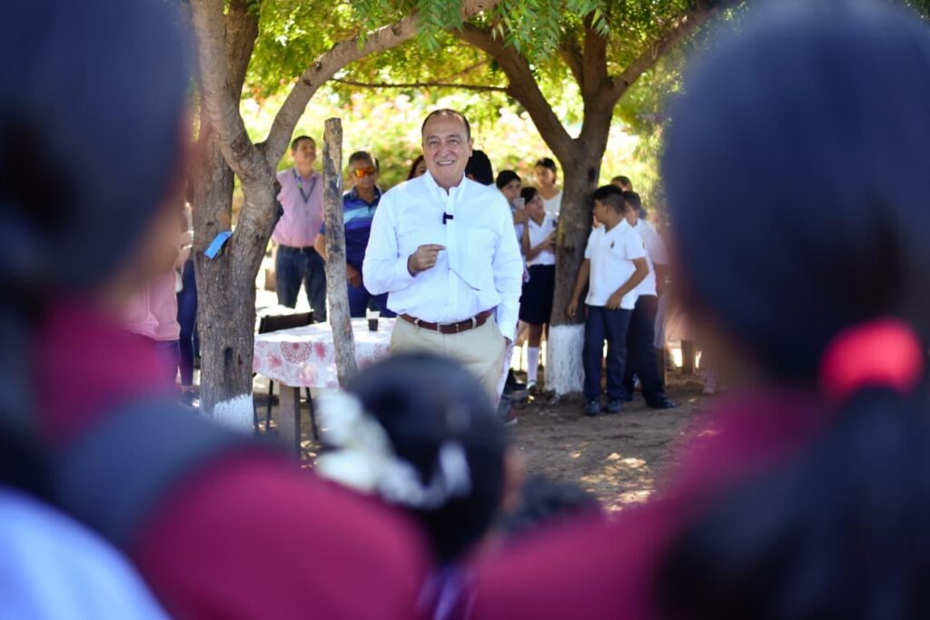 El Alcalde, acompañado del titular de la Secretaría de Bienestar, Joaquín Páez Roiz, y algunos otros funcionarios municipales, como los responsables de Atención a Pueblos Indígenas, Leticia Gastélum, Magaly Herrera, directora de Atención y Participación Ciudadana,, así como Bernardo Higuera, de Bienestar Social, así como el Síndico Municipal de Higuera de Zaragoza, Alejandro Velarde, entre otros, dialogó con la comunidad y ofreció apoyarles para que a partir del próximo año cuenten con espacios dignos donde estudiar.