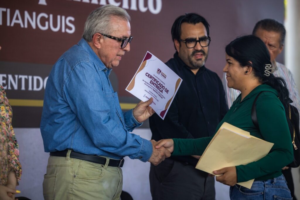 Acompañaron al Gobernador Rocha, Yeraldine Bonilla Valverde, secretaria General de Gobierno; Ricardo Alberto Cansdale, representante de tianguistas; así como, las y los beneficiarios del programa.